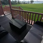 De gesitueerde in Barreiros Cabanas Da Barcela beschikt over een balkon en een zitruimte met een bank, evenals een TV en een flatscreen TV met satellietzenders. Badkamervoorzieningen omvatten zowel een inloopdouche en een apart toilet, evenals een haardroger en handdoeken.